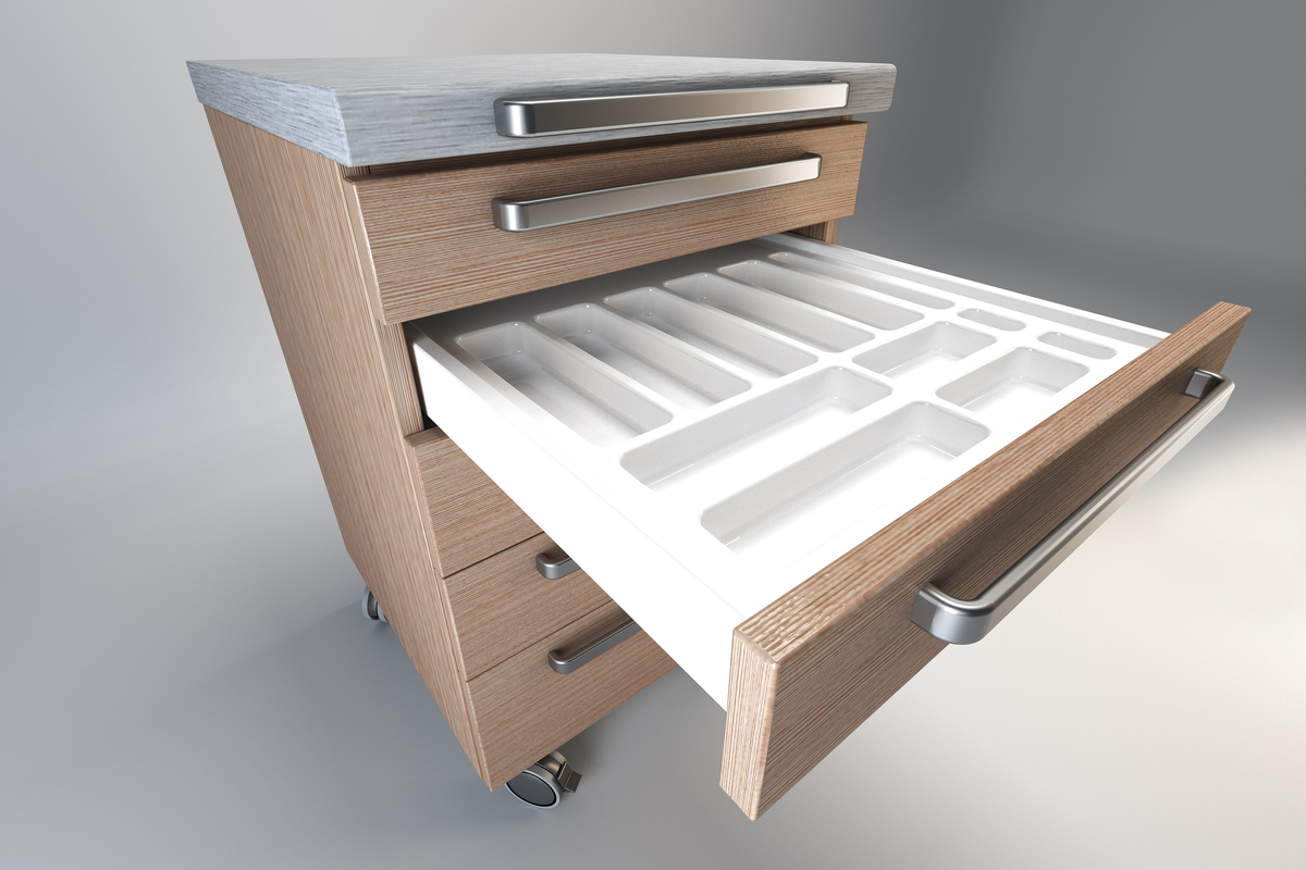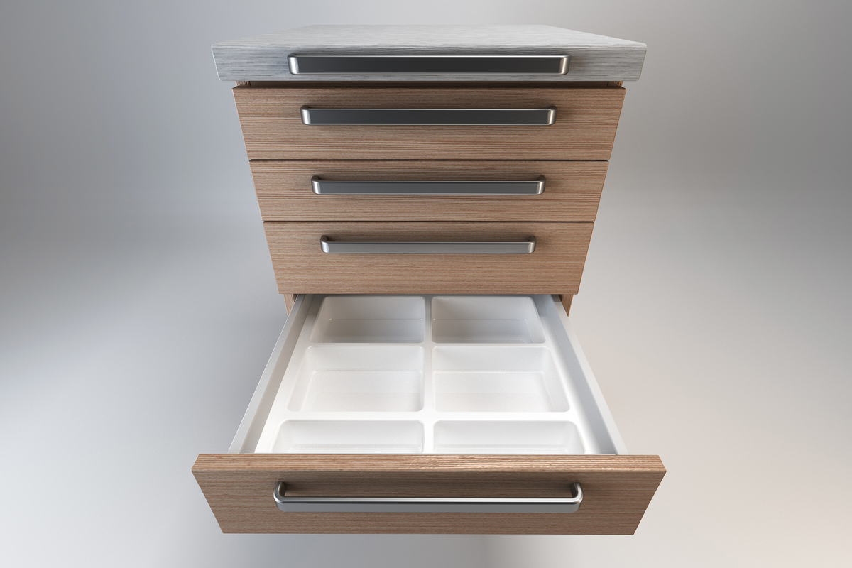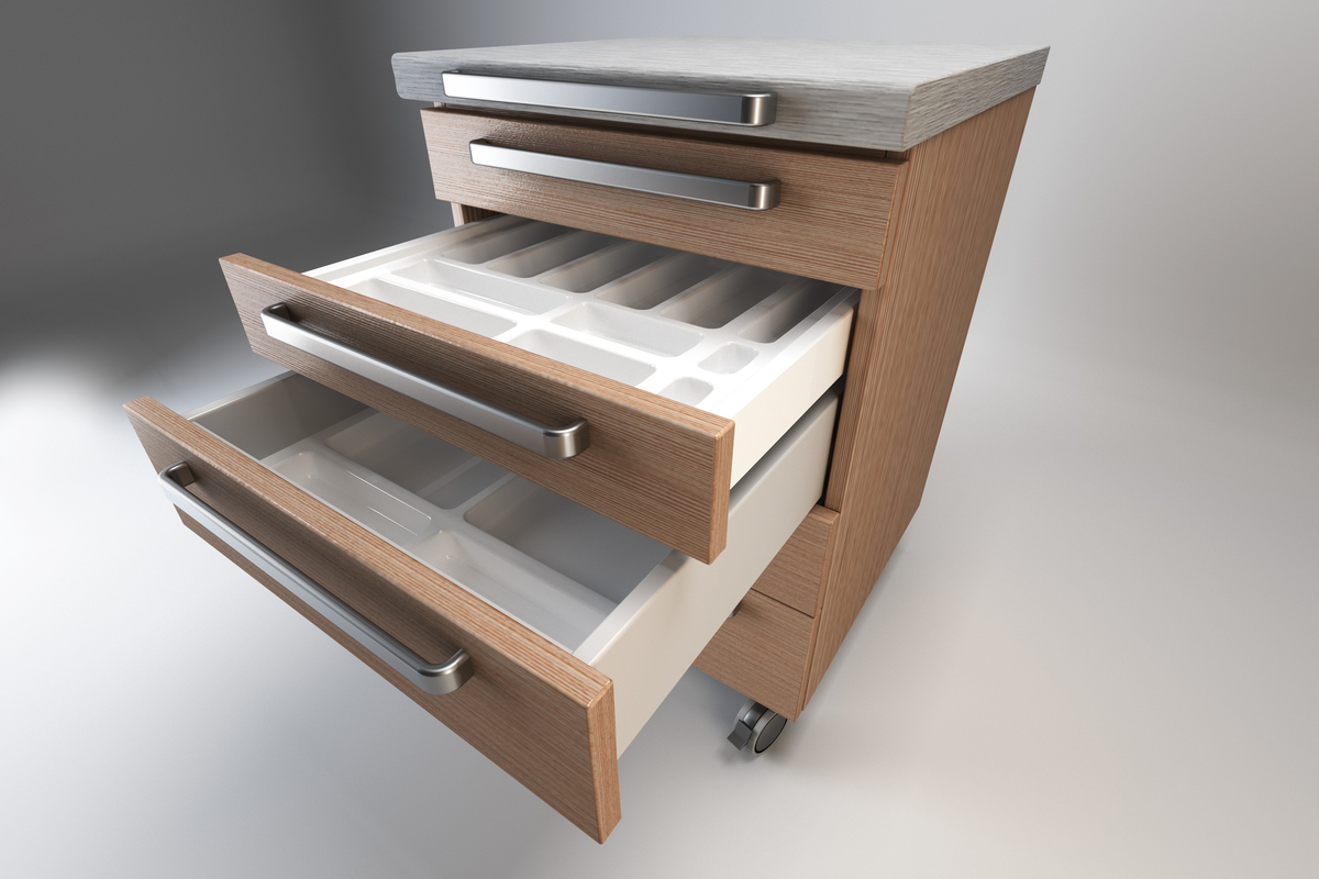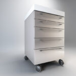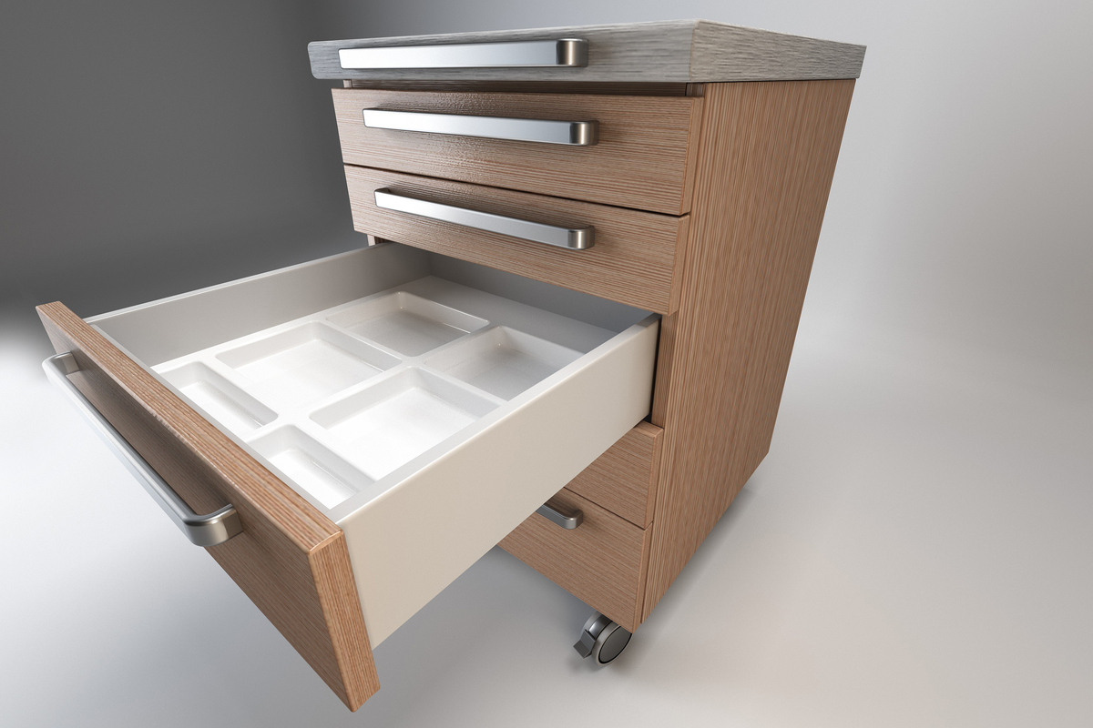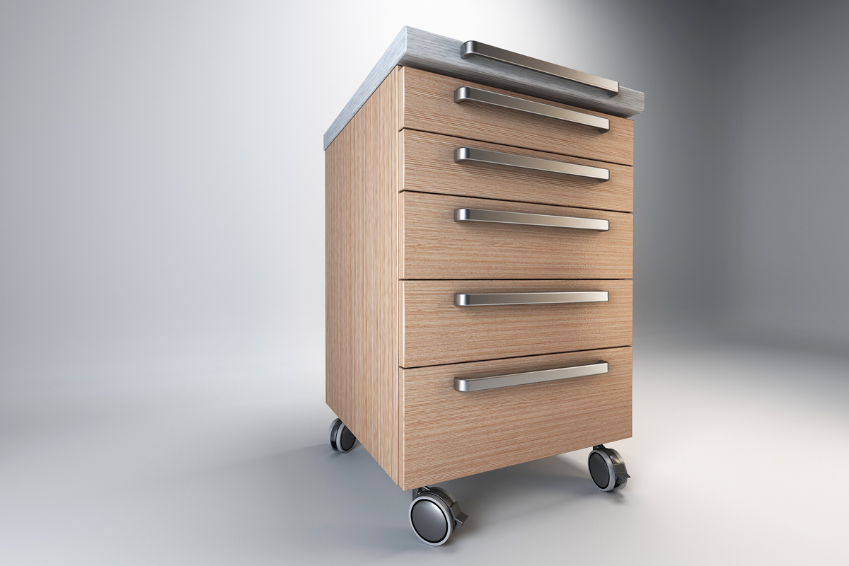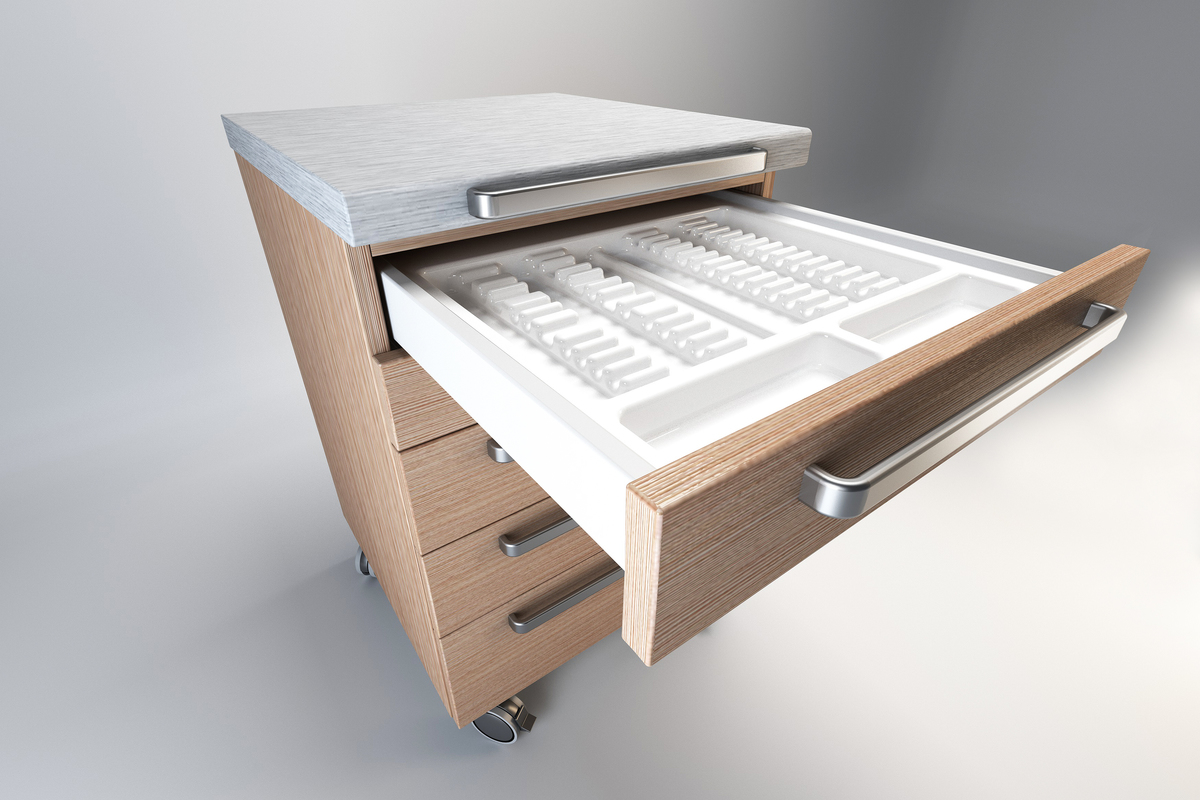 Hjul TENTE gir jevn håndtering og kan låses i alle posisjoner. Design av mobile hjelpemøbler DECOR er enten i skånsomt kornet pastelloverflate, woodgrain, eller i høyglans overflate.